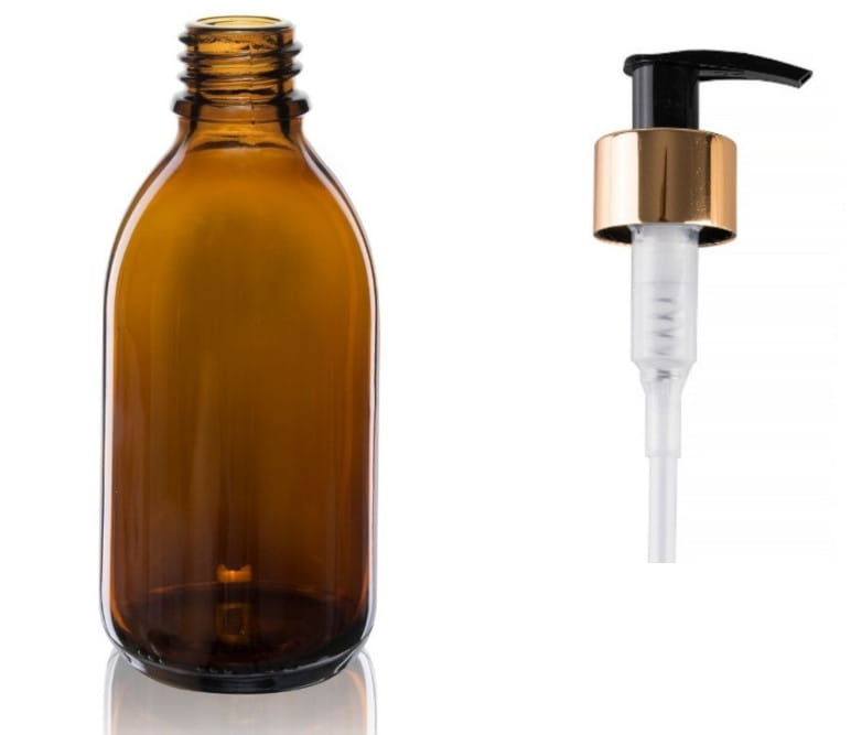 Butelka Szklana BRĄZOWA 200ml z POMPKA złotą