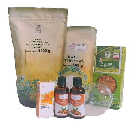 Przygotowując kulę kąpielowe należy trzymać się proporcji. Kwasku cytrynowego ma być o połowę mniej niż sody oczyszczonej. Przykładowo wsypując 1 szklankę sody oczyszczonej musimy dodać pół szklanki kwasku cytrynowego. Do tego należy dodać ćwierć szklanki oleju ze słodkich migdałów.